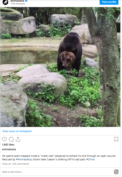 “It’s the worst imaginable bile farm torture,” Animals Asia, who saved Caesar, said about the vest.