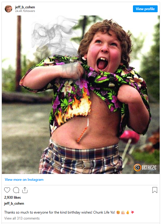 Today, Jeff Cohen is 51 years old and he may no longer look like Chunk. He may never do the Truffle Shuffle without “three martinis” and careful lighting.