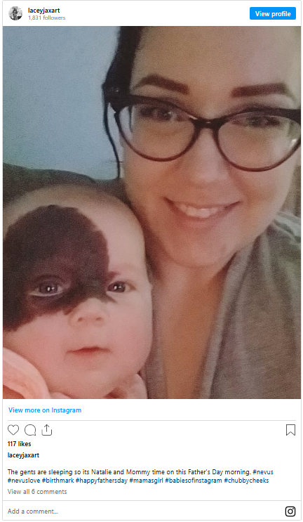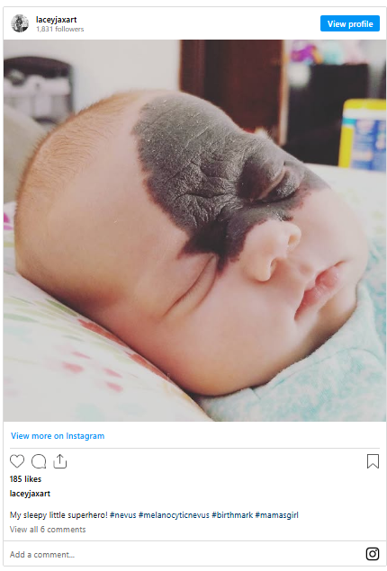 “Prior to her birth, we were completely unaware of this condition and the fact that she was one of the rare. She is even more rare considering her body has somehow lightened her nevus so much as well as eliminated the satellite nevi she was born with and no other satellites have shown up in her 4 short years. She is one of the fortunate,” Lacey wrote a few years ago.
