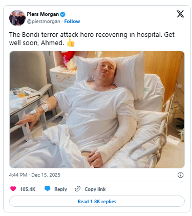 “After witnessing the extraordinary actions of the hero who helped disarm one of the attackers during the Bondi tragedy, an act that prevented the loss of countless more lives, we felt compelled to act. In a moment of chaos and danger, he stepped forward without hesitation. His actions were selfless, instinctive, and undeniably heroic, taken without regard for his own safety. Early reports indicate he was shot twice in the process while protecting others.”