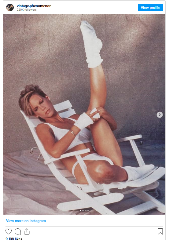Recreating her iconic aerobic routine