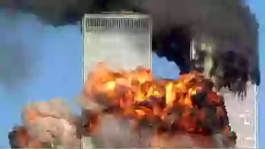The Twin Towers were struck by two planes on September 11, 2001 (Fabina Sbina/ Hugh Zareasky/Getty Images)