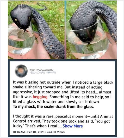While taking a break near the lake, Jake couldn’t believe it when a wild snake slithered up, stopping near him.